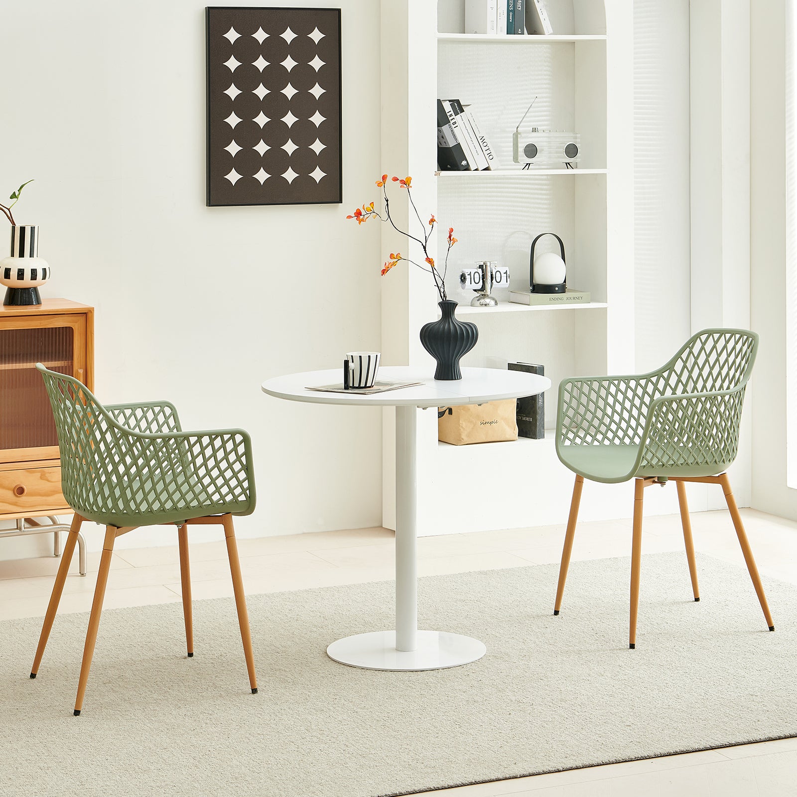 - Uniek uiterlijk: Het diamantvormige holle ontwerp in combinatie met een elegante grijs-groene kleur voegt een unieke industriële stijl toe aan uw interieur.