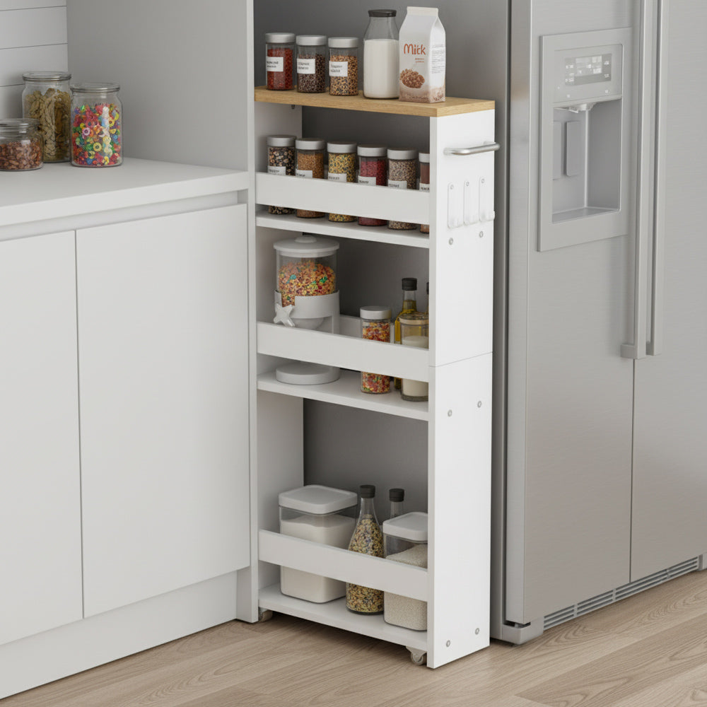 - Keuken: Ideaal voor het opbergen van specerijpotjes, olie- en zoutcontainers en kookgerei, zodat alles gemakkelijk toegankelijk is.